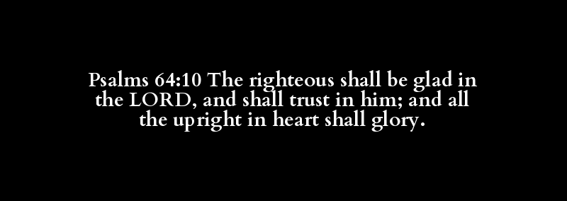 Psalms 64:10 The righteous shall be glad in the LORD, and shall trust in him; and all the upright in heart shall glory.