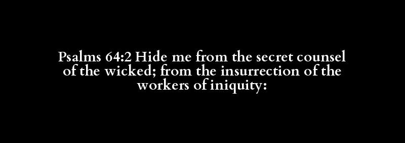 Psalms 64:2 Hide me from the secret counsel of the wicked; from the insurrection of the workers of iniquity: