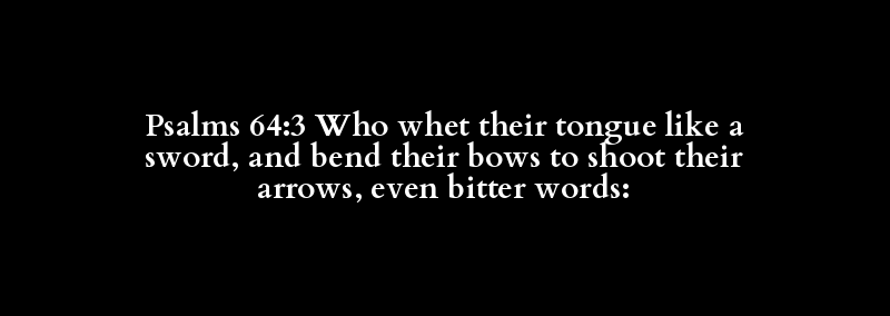 Psalms 64:3 Who whet their tongue like a sword, and bend their bows to shoot their arrows, even bitter words: