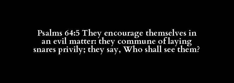 Psalms 64:5 They encourage themselves in an evil matter: they commune of laying snares privily; they say, Who shall see them?