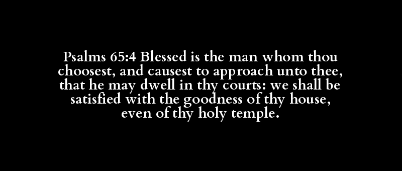 Psalms 65:4 Blessed is the man whom thou choosest, and causest to approach unto thee, that he may dwell in thy courts: we shall be satisfied with the goodness of thy house, even of thy holy temple.