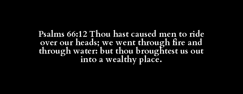 Psalms 66:12 Thou hast caused men to ride over our heads; we went through fire and through water: but thou broughtest us out into a wealthy place.