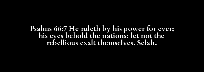 Psalms 66:7 He ruleth by his power for ever; his eyes behold the nations: let not the rebellious exalt themselves. Selah.