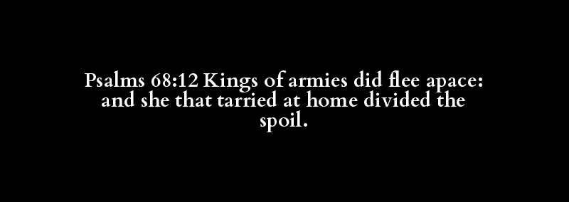 Psalms 68:12 Kings of armies did flee apace: and she that tarried at home divided the spoil.