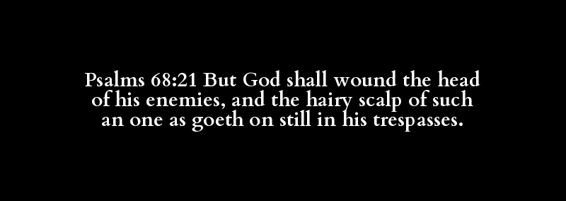 Psalms 68:21 But God shall wound the head of his enemies, and the hairy scalp of such an one as goeth on still in his trespasses.