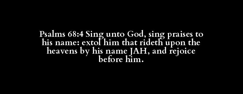 Psalms 68:4 Sing unto God, sing praises to his name: extol him that rideth upon the heavens by his name JAH, and rejoice before him.