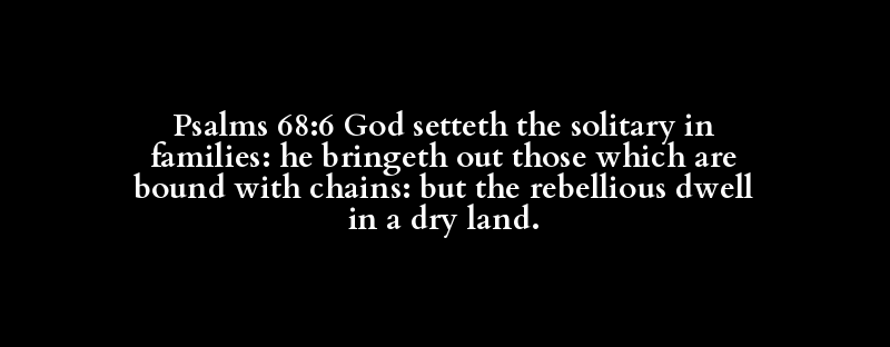 Psalms 68:6 God setteth the solitary in families: he bringeth out those which are bound with chains: but the rebellious dwell in a dry land.
