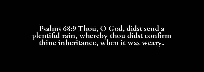 Psalms 68:9 Thou, O God, didst send a plentiful rain, whereby thou didst confirm thine inheritance, when it was weary.