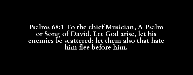 Psalms 68:1 To the chief Musician, A Psalm or Song of David. Let God arise, let his enemies be scattered: let them also that hate him flee before him.