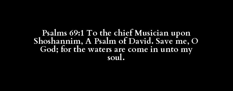 Psalms 69:1 To the chief Musician upon Shoshannim, A Psalm of David. Save me, O God; for the waters are come in unto my soul.