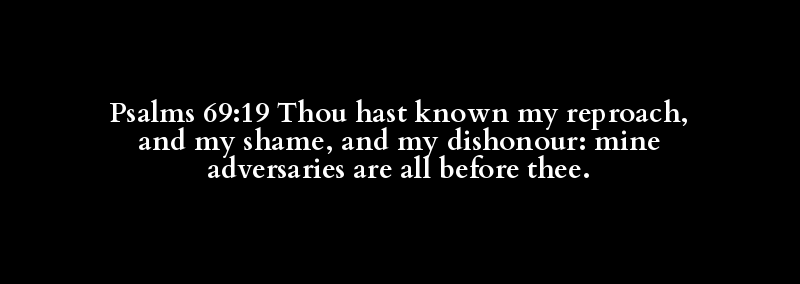 Psalms 69:19 Thou hast known my reproach, and my shame, and my dishonour: mine adversaries are all before thee.