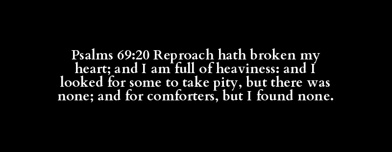 Psalms 69:20 Reproach hath broken my heart; and I am full of heaviness: and I looked for some to take pity, but there was none; and for comforters, but I found none.
