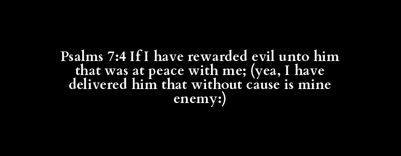 Psalms 7:4 If I have rewarded evil unto him that was at peace with me; (yea, I have delivered him that without cause is mine enemy:)