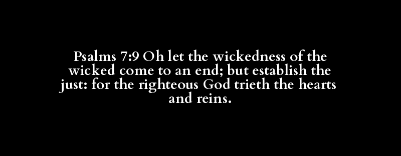 Psalms 7:9 Oh let the wickedness of the wicked come to an end; but establish the just: for the righteous God trieth the hearts and reins.