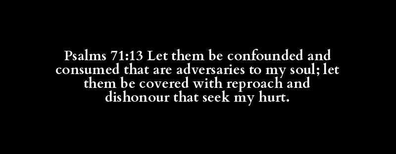 Psalms 71:13 Let them be confounded and consumed that are adversaries to my soul; let them be covered with reproach and dishonour that seek my hurt.
