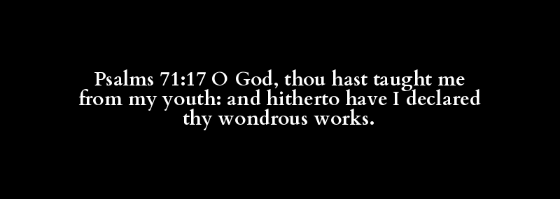 Psalms 71:17 O God, thou hast taught me from my youth: and hitherto have I declared thy wondrous works.