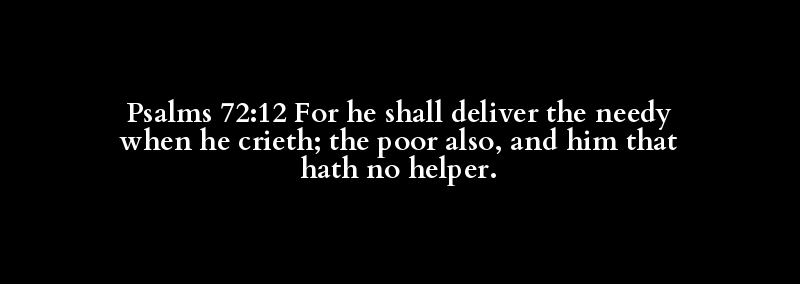 Psalms 72:12 For he shall deliver the needy when he crieth; the poor also, and him that hath no helper.
