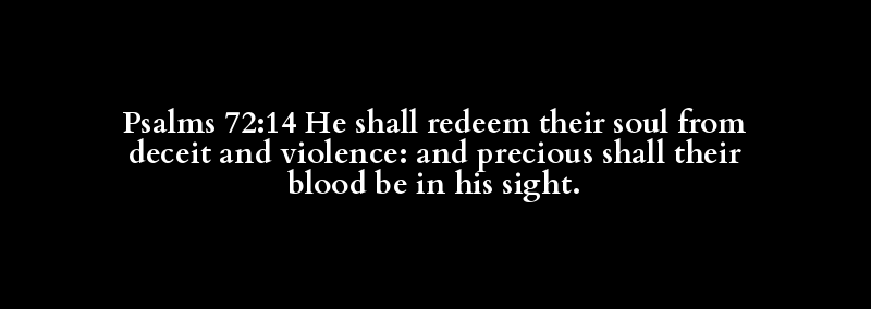 Psalms 72:14 He shall redeem their soul from deceit and violence: and precious shall their blood be in his sight.