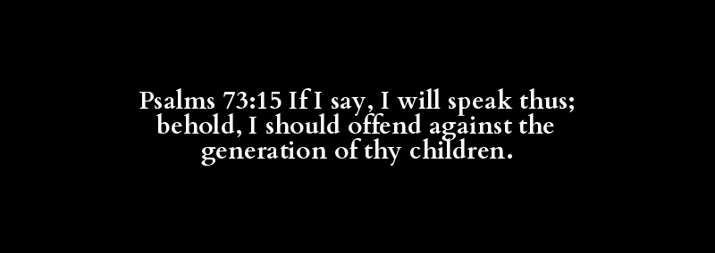 Psalms 73:15 If I say, I will speak thus; behold, I should offend against the generation of thy children.