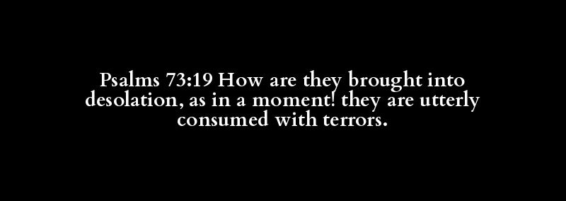 Psalms 73:19 How are they brought into desolation, as in a moment! they are utterly consumed with terrors.