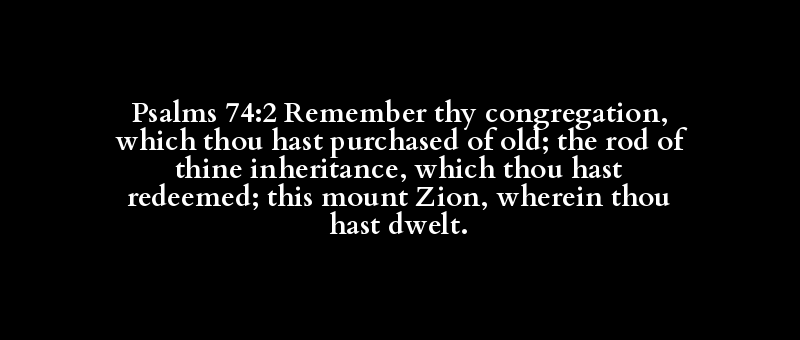 Psalms 74:2 Remember thy congregation, which thou hast purchased of old; the rod of thine inheritance, which thou hast redeemed; this mount Zion, wherein thou hast dwelt.