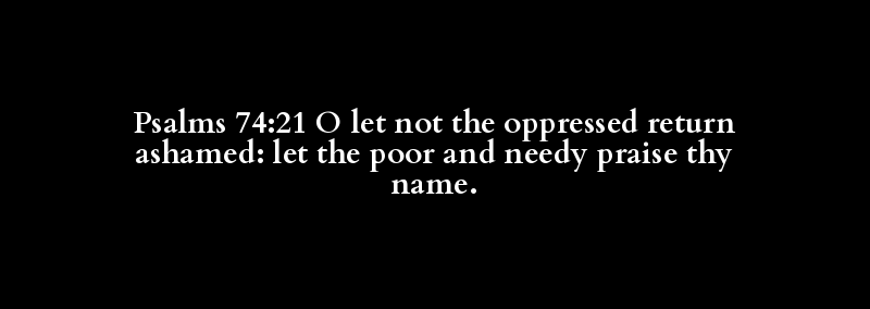 Psalms 74:21 O let not the oppressed return ashamed: let the poor and needy praise thy name.