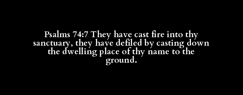 Psalms 74:7 They have cast fire into thy sanctuary, they have defiled by casting down the dwelling place of thy name to the ground.