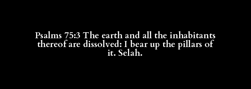 Psalms 75:3 The earth and all the inhabitants thereof are dissolved: I bear up the pillars of it. Selah.