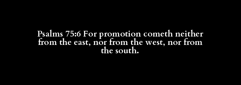 Psalms 75:6 For promotion cometh neither from the east, nor from the west, nor from the south.