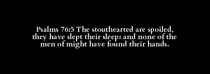 Psalms 76:5 The stouthearted are spoiled, they have slept their sleep: and none of the men of might have found their hands.
