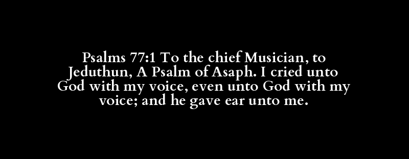 Psalms 77:1 To the chief Musician, to Jeduthun, A Psalm of Asaph. I cried unto God with my voice, even unto God with my voice; and he gave ear unto me.