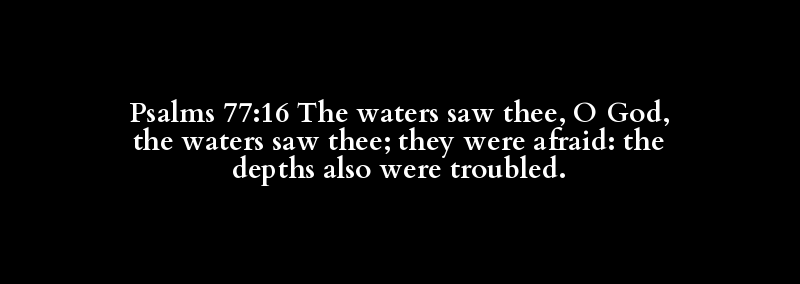 Psalms 77:16 The waters saw thee, O God, the waters saw thee; they were afraid: the depths also were troubled.