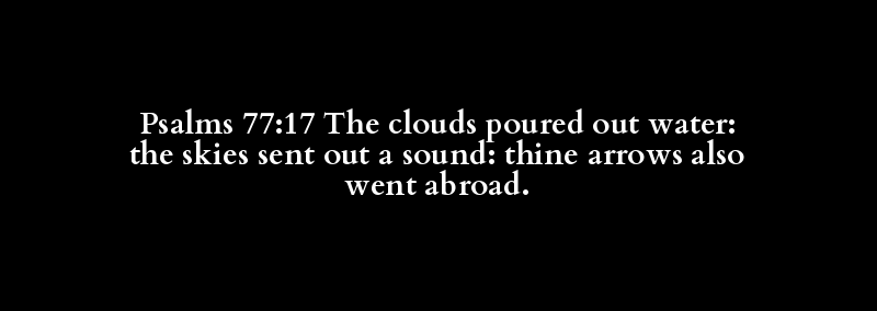 Psalms 77:17 The clouds poured out water: the skies sent out a sound: thine arrows also went abroad.