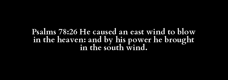 Psalms 78:26 He caused an east wind to blow in the heaven: and by his power he brought in the south wind.