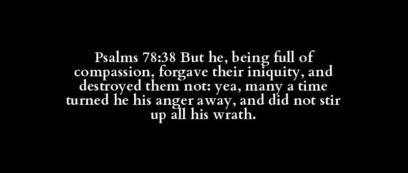 Psalms 78:38 But he, being full of compassion, forgave their iniquity, and destroyed them not: yea, many a time turned he his anger away, and did not stir up all his wrath.