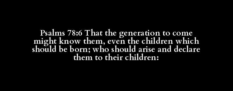 Psalms 78:6 That the generation to come might know them, even the children which should be born; who should arise and declare them to their children: