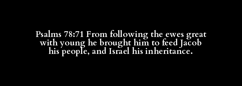Psalms 78:71 From following the ewes great with young he brought him to feed Jacob his people, and Israel his inheritance.