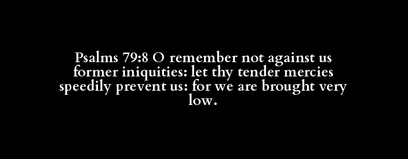Psalms 79:8 O remember not against us former iniquities: let thy tender mercies speedily prevent us: for we are brought very low.