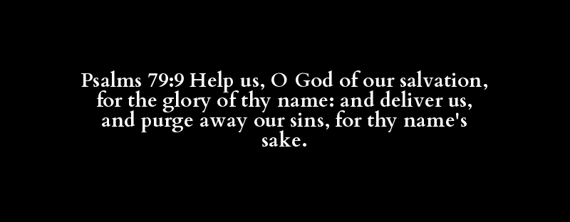 Psalms 79:9 Help us, O God of our salvation, for the glory of thy name: and deliver us, and purge away our sins, for thy name's sake.