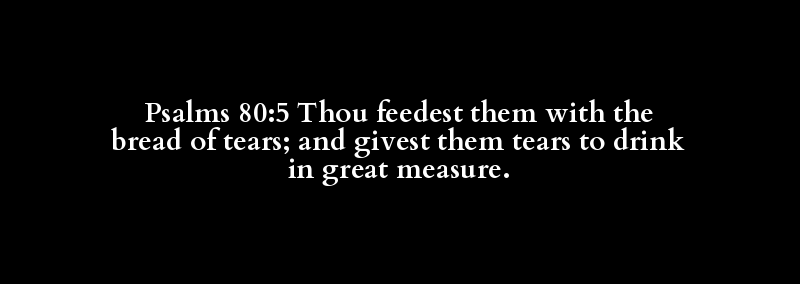 Psalms 80:5 Thou feedest them with the bread of tears; and givest them tears to drink in great measure.
