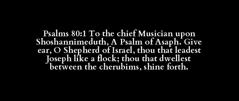 Psalms 80:1 To the chief Musician upon Shoshannimeduth, A Psalm of Asaph. Give ear, O Shepherd of Israel, thou that leadest Joseph like a flock; thou that dwellest between the cherubims, shine forth.