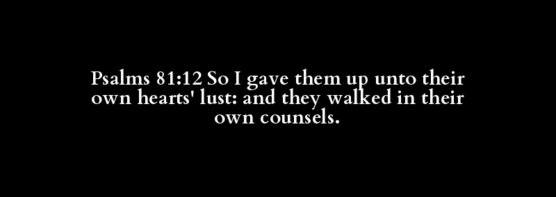 Psalms 81:12 So I gave them up unto their own hearts' lust: and they walked in their own counsels.