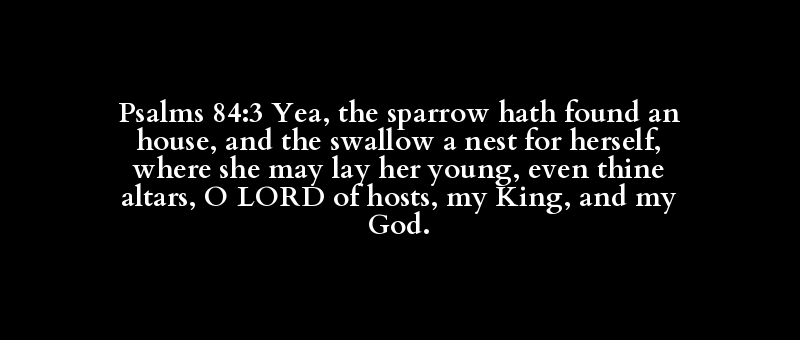 Psalms 84:3 Yea, the sparrow hath found an house, and the swallow a nest for herself, where she may lay her young, even thine altars, O LORD of hosts, my King, and my God.