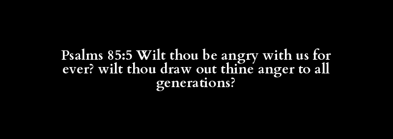 Psalms 85:5 Wilt thou be angry with us for ever? wilt thou draw out thine anger to all generations?