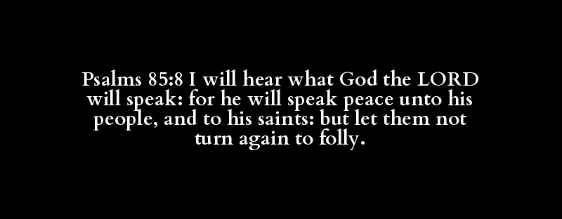 Psalms 85:8 I will hear what God the LORD will speak: for he will speak peace unto his people, and to his saints: but let them not turn again to folly.