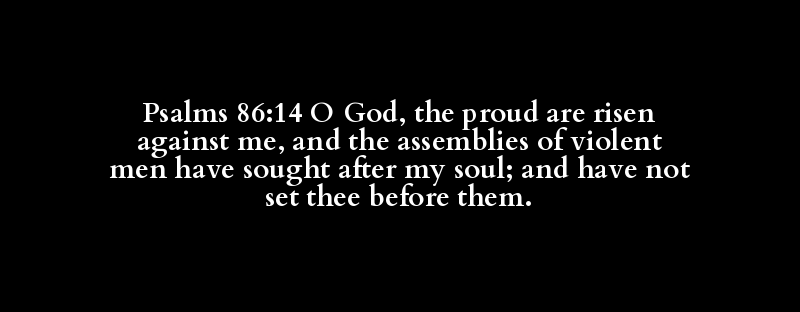 Psalms 86:14 O God, the proud are risen against me, and the assemblies of violent men have sought after my soul; and have not set thee before them.