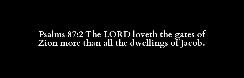 Psalms 87:2 The LORD loveth the gates of Zion more than all the dwellings of Jacob.