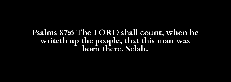 Psalms 87:6 The LORD shall count, when he writeth up the people, that this man was born there. Selah.