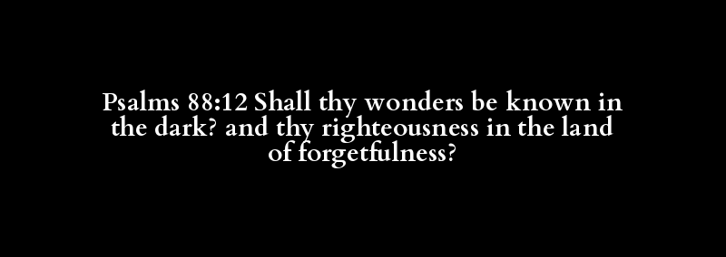 Psalms 88:12 Shall thy wonders be known in the dark? and thy righteousness in the land of forgetfulness?