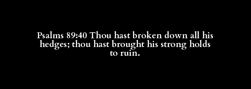 Psalms 89:40 Thou hast broken down all his hedges; thou hast brought his strong holds to ruin.